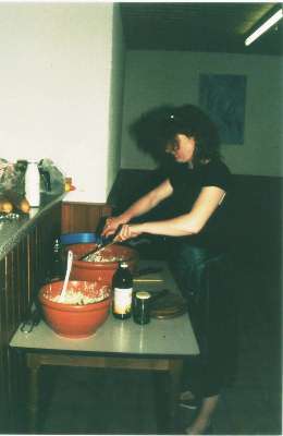 Sanatan beim Nudelsalatkochen